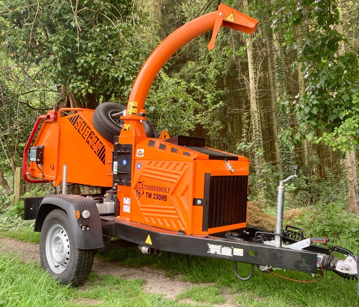 Notre broyeur de branches principal est un TimberWolf TW 230. Il est équipé d'un moteur essence (Briggs & Stratton Vangard) de 37 chevaux. Il transforme extrêment rapidement des branches de maximum 16 cm de diamètre en de beaux copeaux valorisables pour vous en paillage (BRF). Sinon, nous évacuons ces copeaux qui sont nettement plus faciles à transporter que des branches entières.