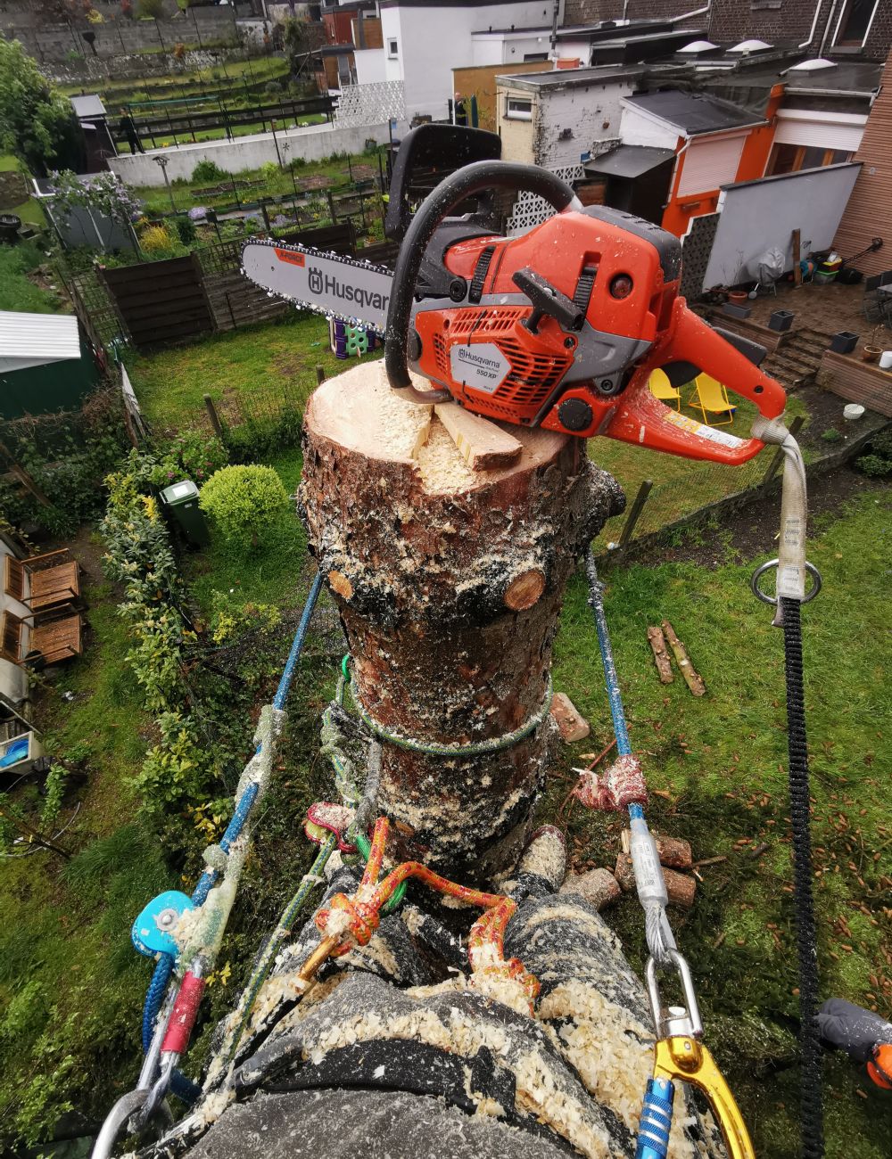 Quels que soient leurs emplacements, nous trouvons une solution. Nous effectuons un abattage du sol dans les règles de l'art du bûcheron ou nous procédons à leur abattage par démontage. C'est-à-dire que nous grimpons dans l'arbre grâce à des griffes d'élagage et des cordes. Nous enlevons branche par branche en terminant par la tête de l'arbre (l'éhoupage). Nous débitons ensuite le tronc billon par billon jusqu'à arriver au sol.