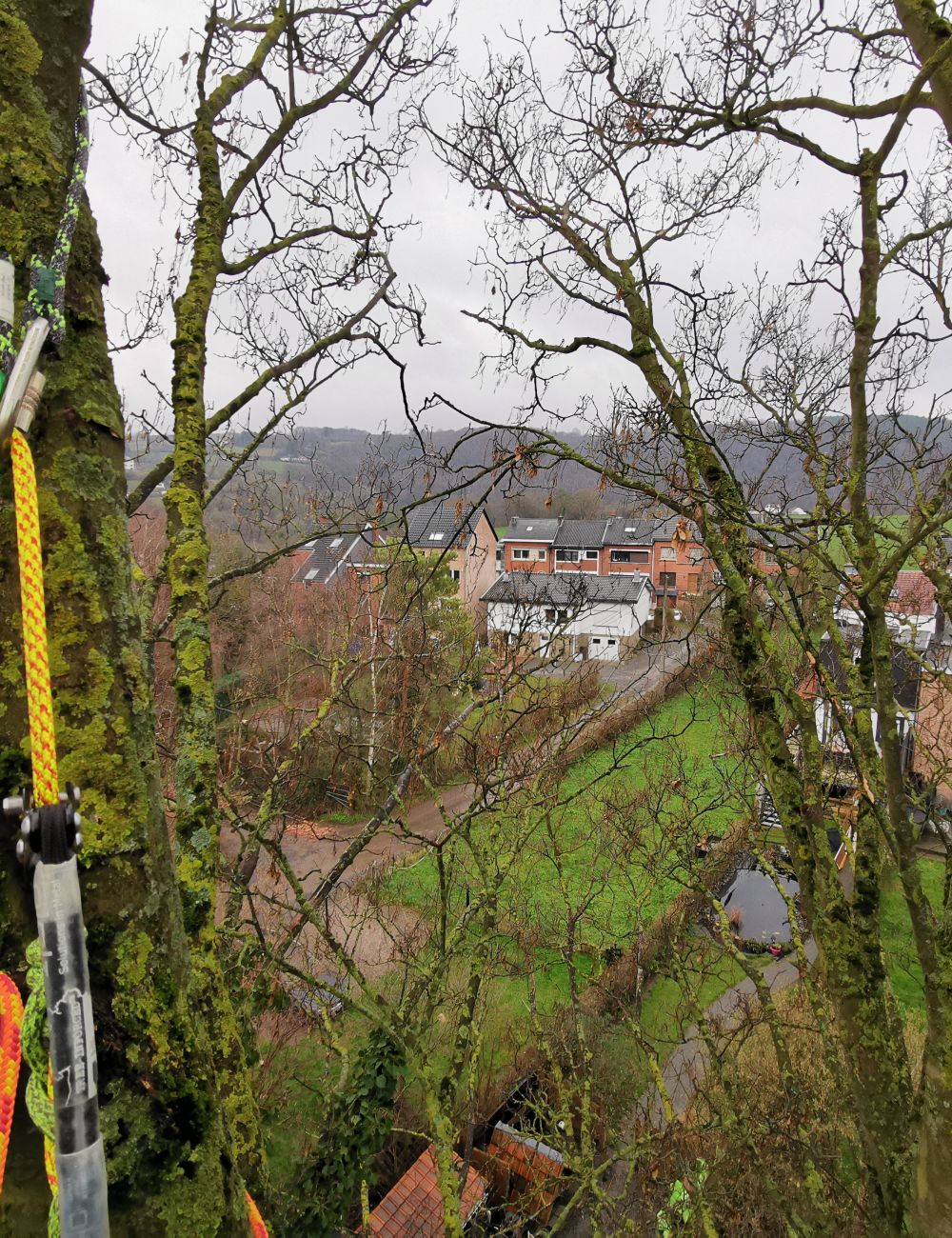 Nous sécurisons nos déplacements dans le houppier avec des cordes et nous n'utilisons surtout pas de griffes d'élagage qui endommageraient l'écorce.